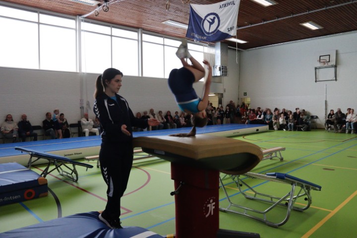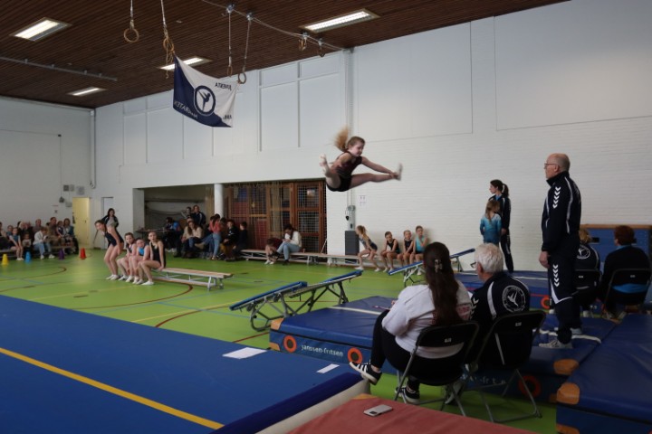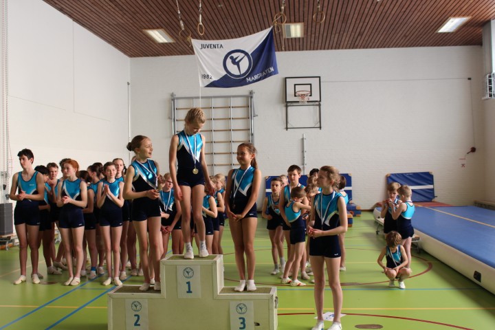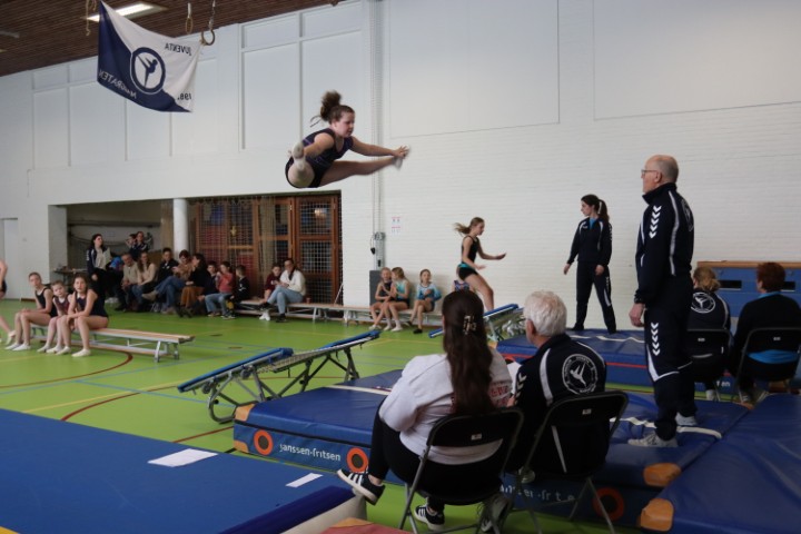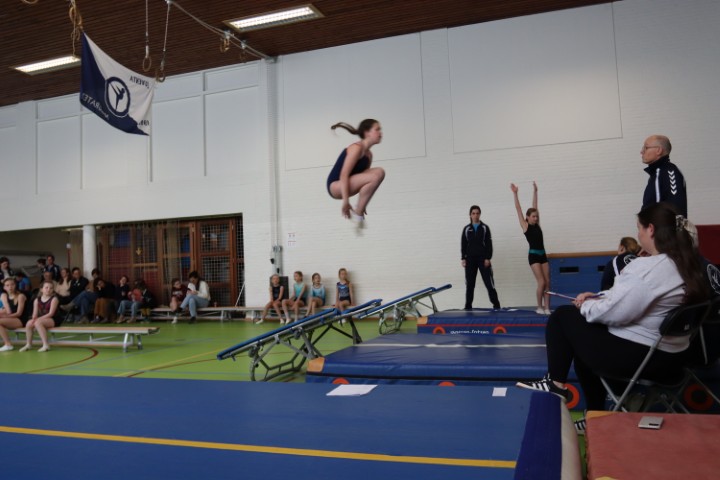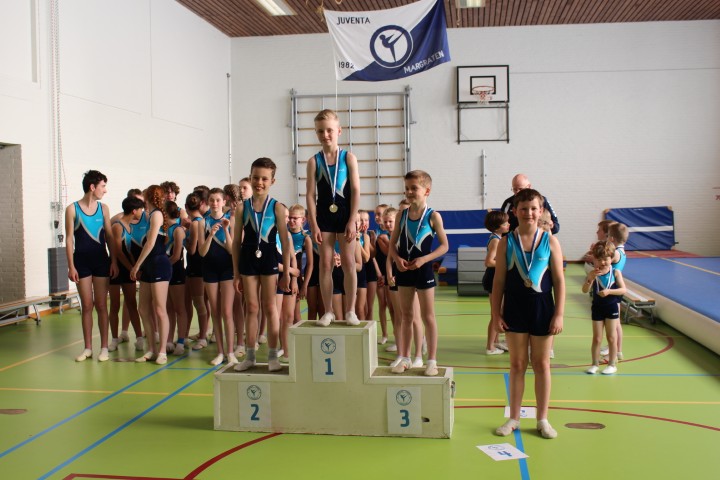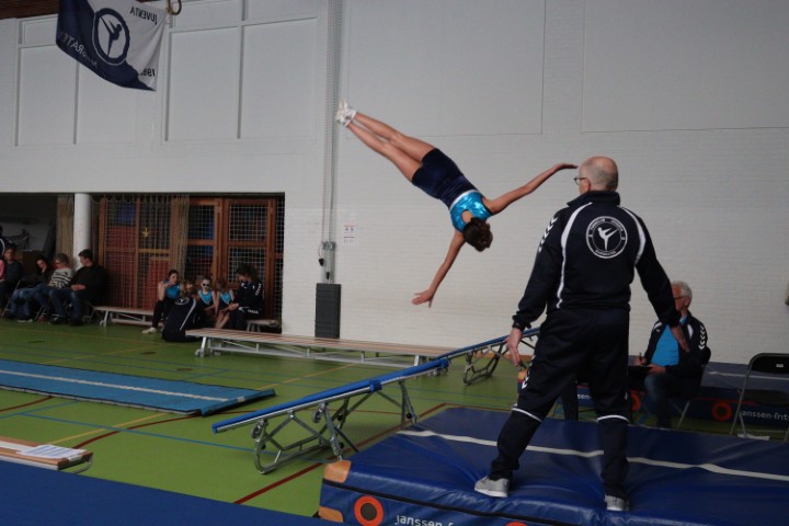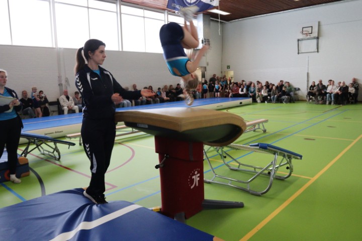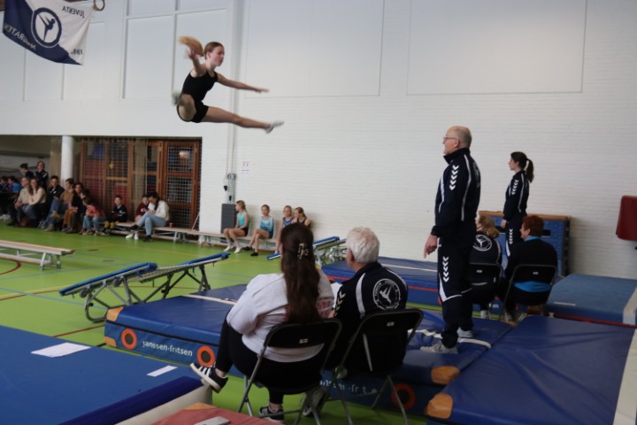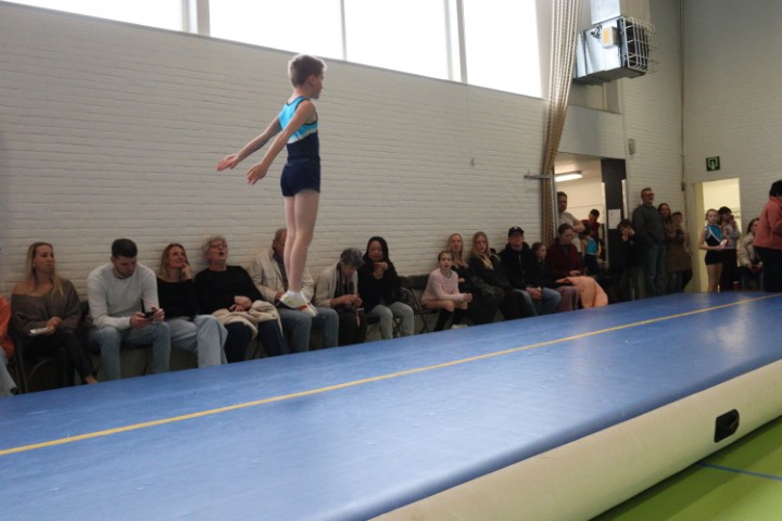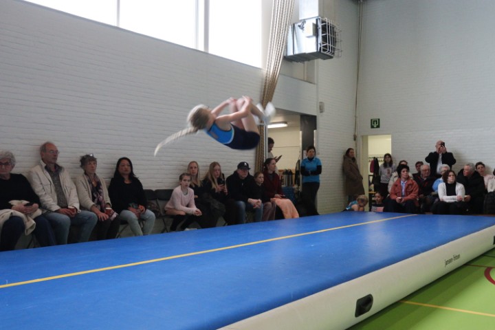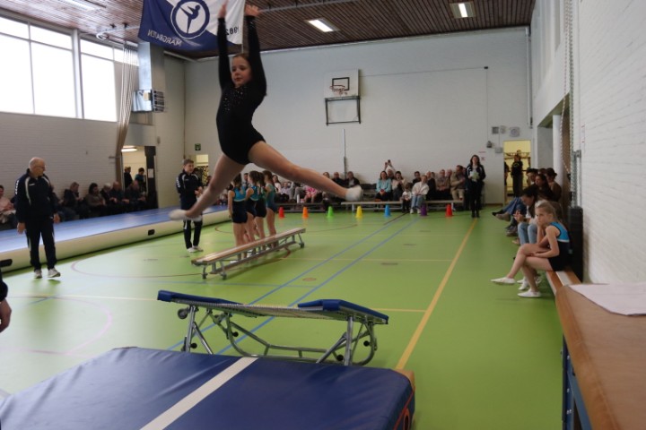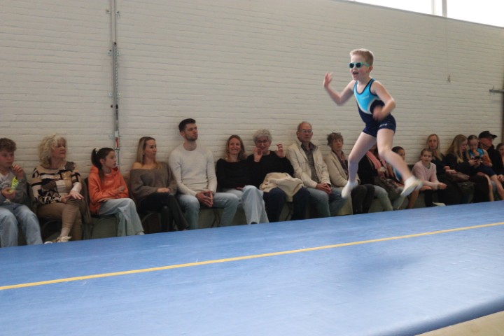 Afgelopen zaterdag 28 maart zijn weer de jaarlijkse clubkampioenschappen in onze gymzaal georganiseerd. De clubkampioenschappen zijn bij uitstek de gelegenheid om aan papa, mama, opa en oma te laten zien aan welke sprongen de (klein)kinderen de afgelopen periode geoefend hebben.